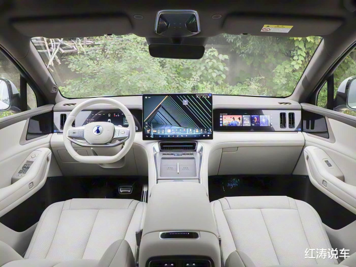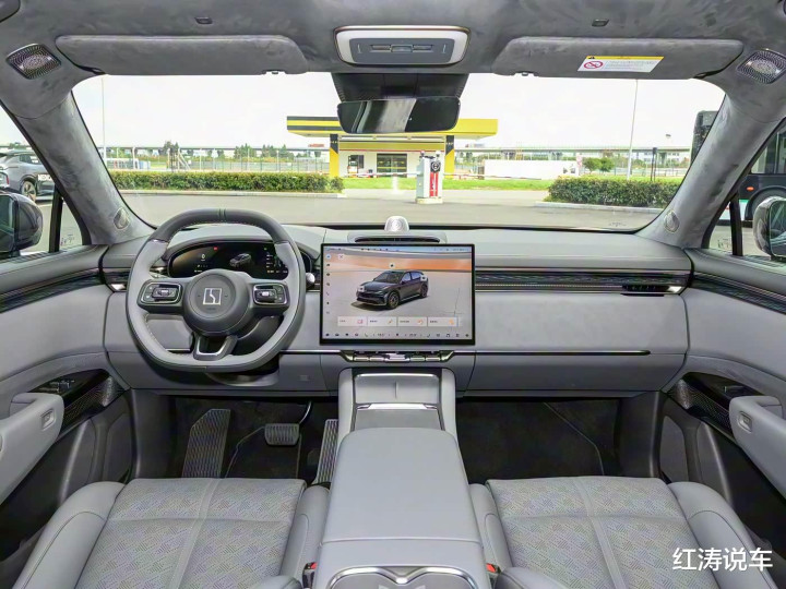 内饰仪表和副驾屏尺寸为13.2英寸,还配备了17.3英寸中控屏、50英寸AR-HUD抬头显示,主驾座椅提供通风、加热、10点背部按摩、记忆等,副驾为零重力座椅,除了支持通风、加热、10点背部按摩、记忆等功能外,还具有4向调节腿托以及一键零重力模式,第二排座椅同样支持通风、加热、10点背部按摩;第三排座椅则支持加热以及电动靠背角度调节,提供17.3英寸后排吸顶屏、流媒体内后视镜、大尺寸化妆镜、128色氛围灯、侧窗遮阳帘、香氛系统、20扬声器帝瓦雷音响+杜比全景声、AR感应尾门等。