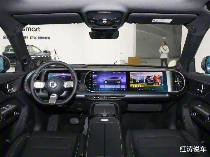 Smart精灵#5 EHD超级电混共推出4款车型,指导价格区间为18.99万元-23.99万元,限时到手价16.99万-21.99万元,外观采用“时空胶囊”的设计语言,前包围应用“哑光拉丝”工艺制成的车身饰板,车尾还应用胶囊样式的尾灯组,配有无框车门、隐藏式门把手、19英寸轮辋、车顶行李架等,整车长宽高分别为4705/1920/1710毫米,轴距为2900毫米,定位于中型SUV。